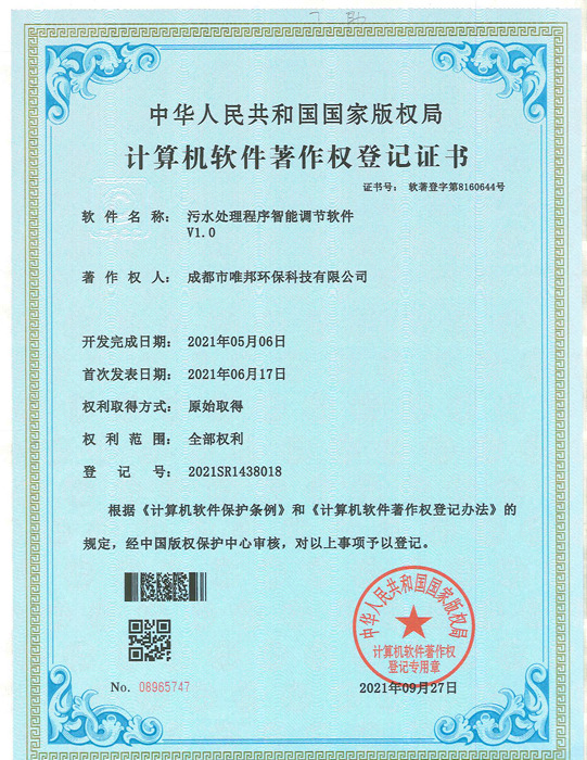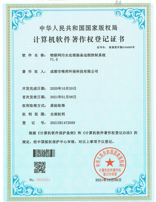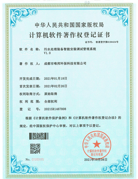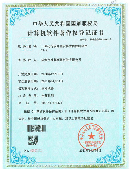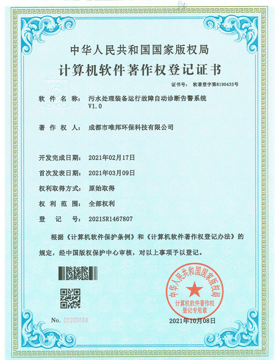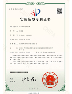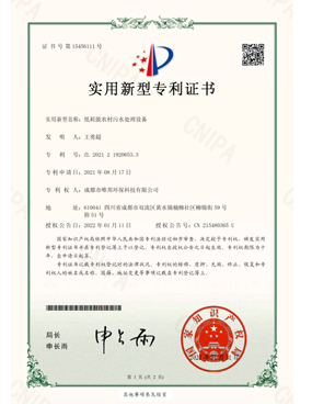 低耗能農(nóng)村污水處理設(shè)備-證書